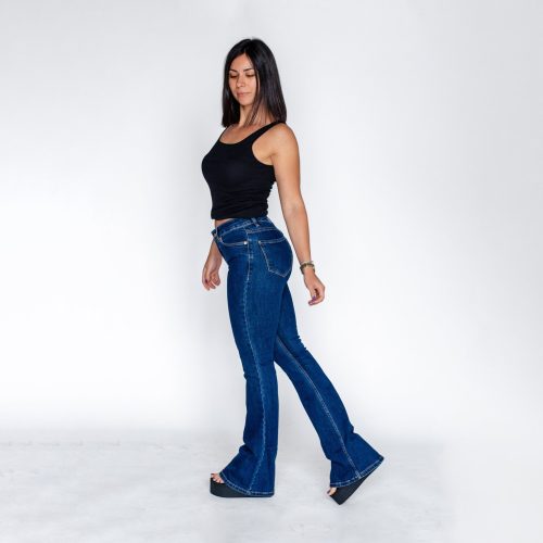 High Waisted Flare Jeans: Dark Blue Stretch Denim