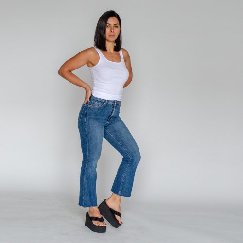 Highwaisted Cropped Bootcut Jeans Women’s Raw Hem Flare