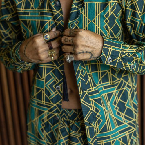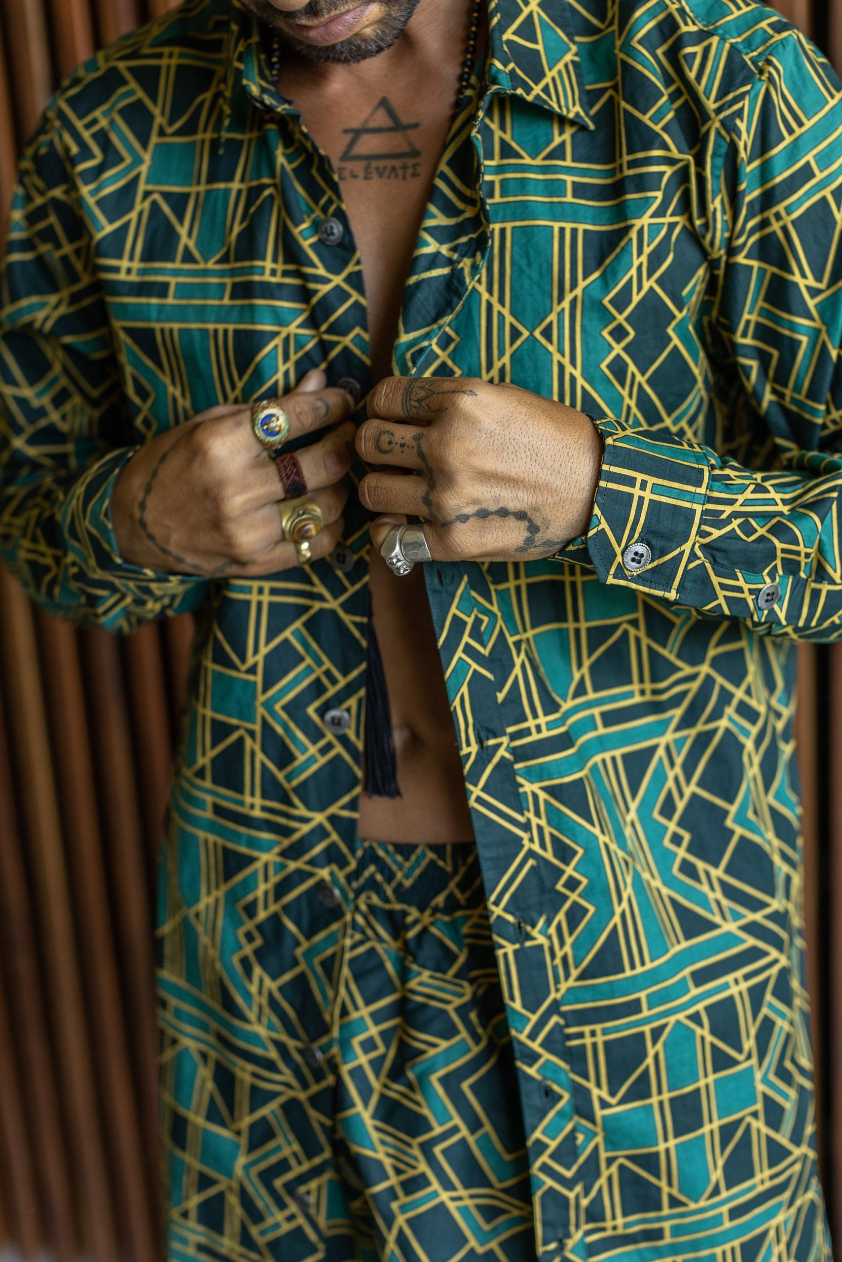 VALO SPIRIT PANTAI Green Geometric – A Classic Slim Fit Button Up Shirt with Unique Print, Print shirt Sacred Geometry, Boho Clothes, Bohemian Clothing, Long Sleeve Shirt, Sacred Geometry Clothing, Gift For Him, Avant Garden Cloth Men, Festival Outfit