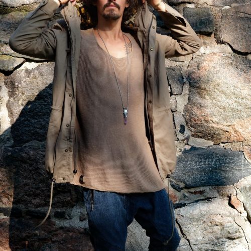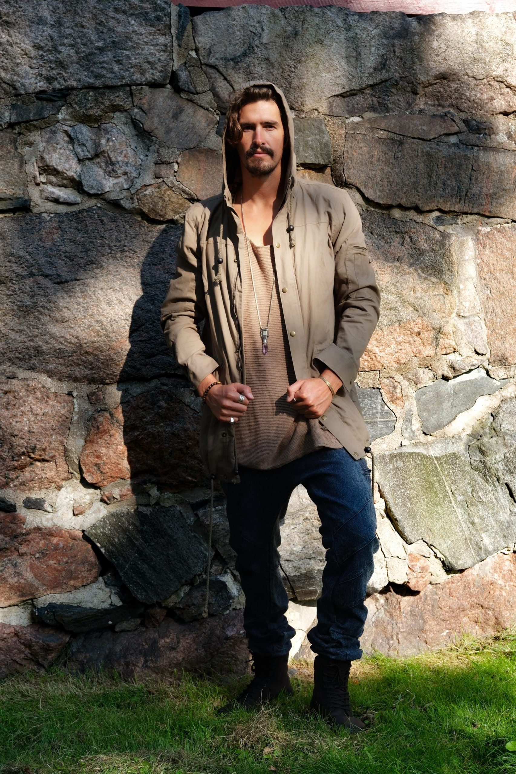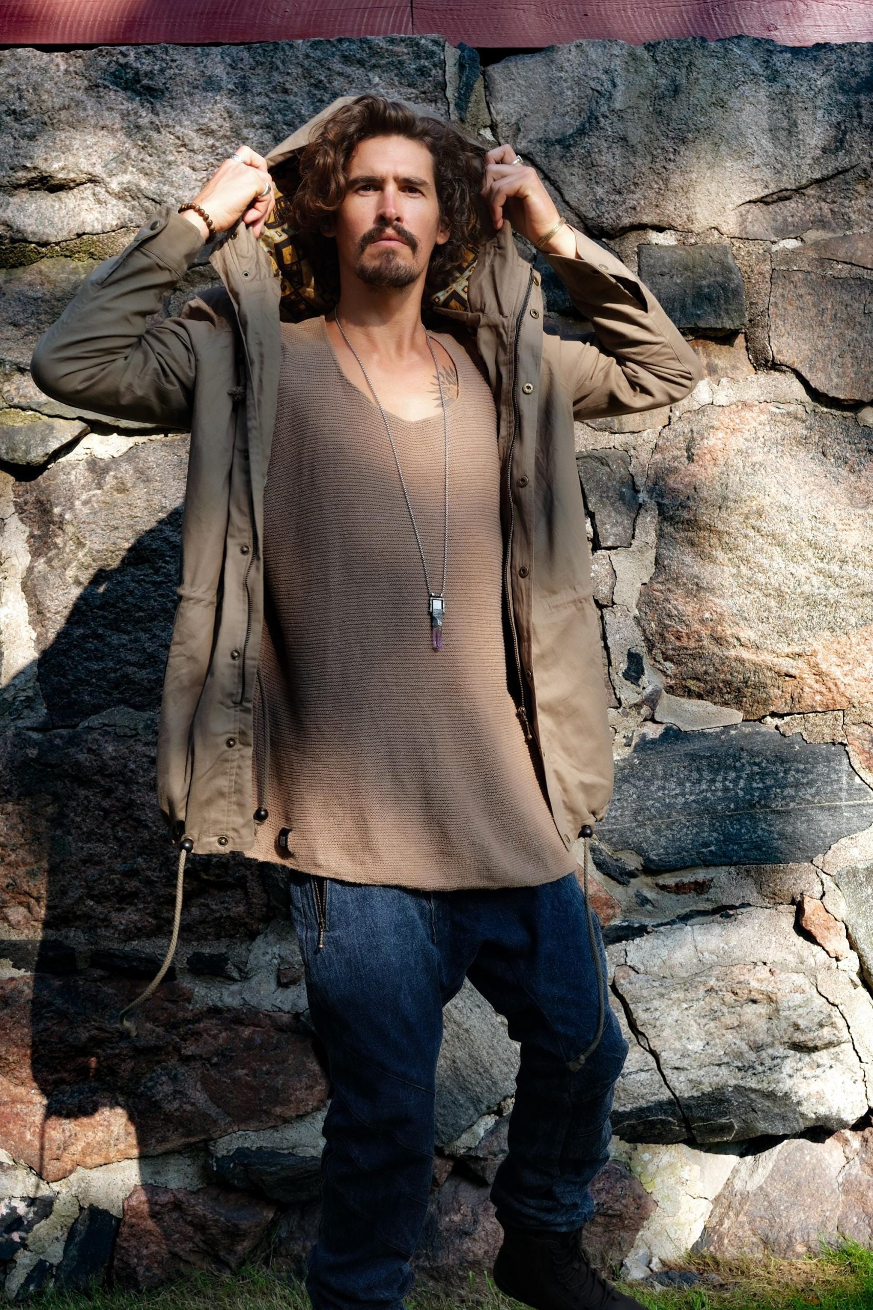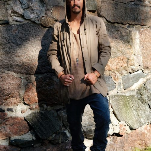 Medium-Long 100% cotton jacket with impressive VALO print art by artist Timo Nummela on the interior layer. Double layered cotton to keep you protected from the winter breeze, perfect all seasons coat. Two convenient access diagonal zipper pockets and inside vertical zipper pocket to keep your valuables always handy.