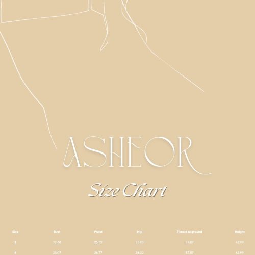 Size 2 – Bust: 32.68 in / 83 cm | Waist: 25.59 in / 65 cm | Hip: 35.83 in / 91 cm | Throat to ground: 57.87 in / 147 cm | Height: 62.99 in / 160 cm